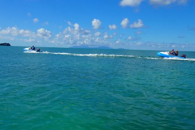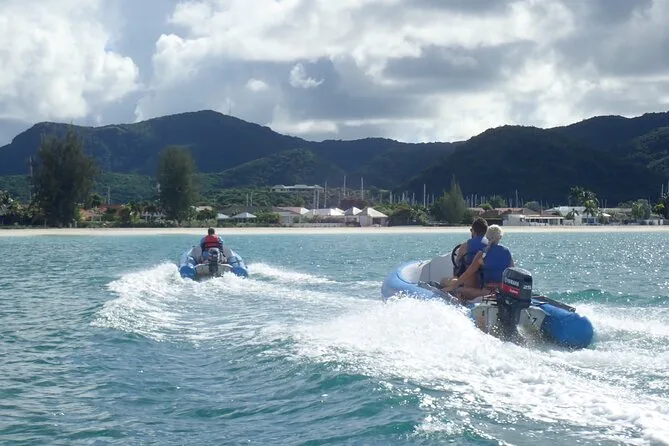 Your half-day includes roundtrip transport from your hotel or cruise ship by air-conditioned vehicle, use of an 11-foot two-seater motorboat (shared between two people), all snorkeling equipment—mask, fins, snorkel—and guidance both during boating and while exploring Cades Reef itself before heading back ashore together.