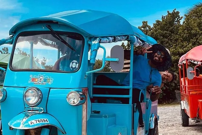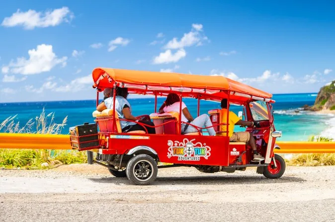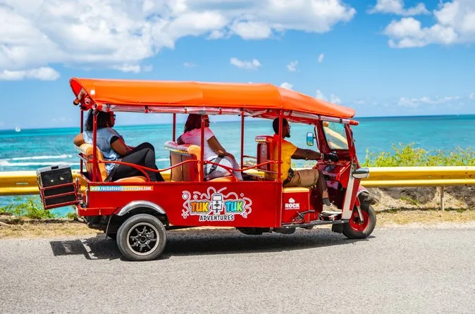 Your day includes rides in open-air tuk-tuks through Antigua’s Fig Tree Drive rainforest with a local guide leading the way; stops to sample fresh fruits from local vendors; visits to three beautiful white sand beaches where you can swim or just relax; plus bottled water, lite bites along the route, and their signature island blend fruit punch whenever you need it.