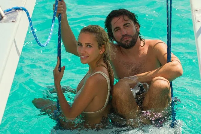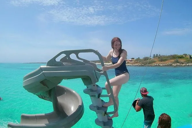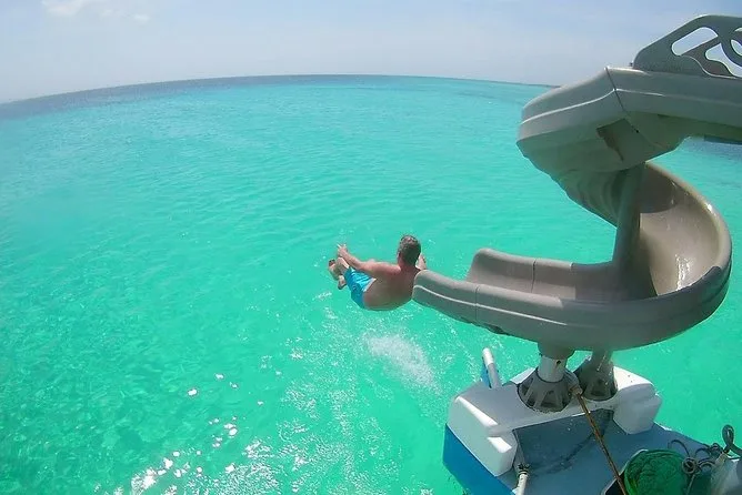 You can try a rope swing or spinning water slide from the catamaran after snorkeling.