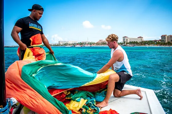 Your day includes use of all necessary parasailing equipment and a 12-minute ride high above Aruba’s northern coast after checking in right on Noord Beach between Hilton and Barcelo resorts; everything’s set up so you just show up ready for adventure.