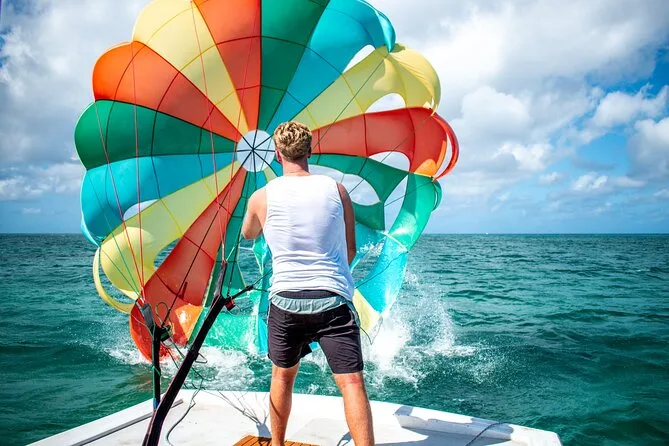 The parasailing ride lasts 12 minutes in the air.