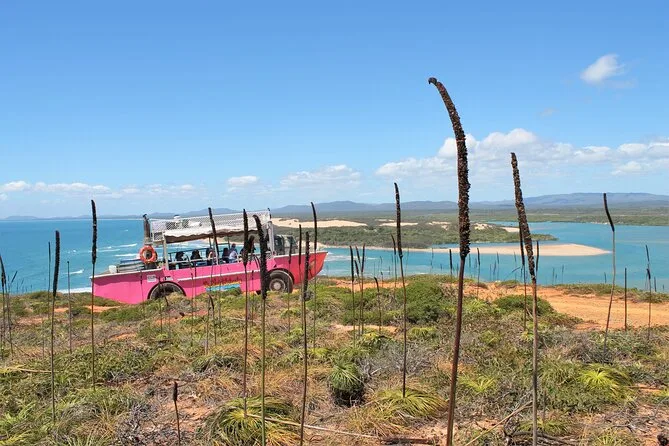 You’ll ride the bright pink 1770 LARC across tidal creeks and along wild coastline with a local guide who knows every story. Climb Bustard Head Lightstation for windswept views, explore its keeper’s cottage museum, try sandboarding on giant dunes after lunch, and end your day with billy tea as sunset colors spill over Eurimbula. It’s not fancy — just real Queensland adventure.