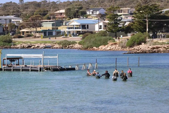 Your day includes use of protective waterproof waders (just bring your own socks), hands-on oyster shucking guidance from local farmers at Coffin Bay’s working farm deck, fresh tastings of both Pacific and native Angasi oysters straight from the water, plus plenty of time for questions and stories along the way before heading back ashore.