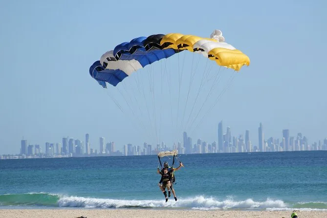 Your day includes ground training with your instructor at Gold Coast Airport before boarding for your tandem skydive experience; all fees and taxes are covered; you’ll freefall above city and sea before floating down under parachute for a soft landing right on Kirra Beach—and leave with your own Jump Certificate as proof you did it.