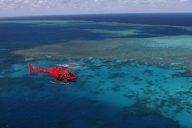 The scenic helicopter flight lasts approximately 10 minutes over Hastings Reef.