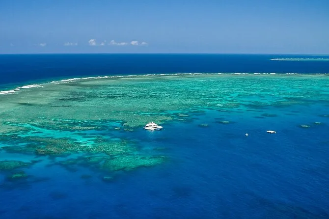 You’ll step onto Evolution in Cairns for a full-day cruise across two outer Great Barrier Reef sites, snorkel among vivid corals with all gear included, savor a fresh BBQ lunch onboard, then lift off for a short helicopter flight over swirling reef colors before winding down with wine and cheese on deck—leaving you with more than just photos.
