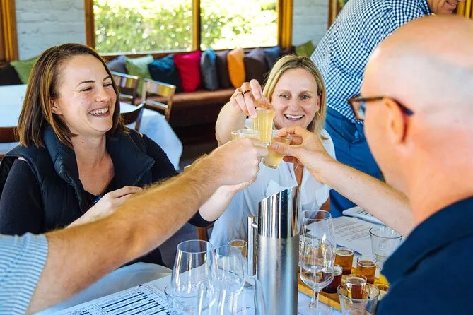 Your day includes pickup at a central Sydney location before heading out in premium transport to three boutique cellar doors for guided tastings of local wines paired with cheese and chocolate. You’ll enjoy an exclusive behind-the-scenes winery tour plus a restaurant lunch with your choice of wine or beer—and finish up at Hunter Distillery for organic spirit tastings before returning to Sydney in comfort.