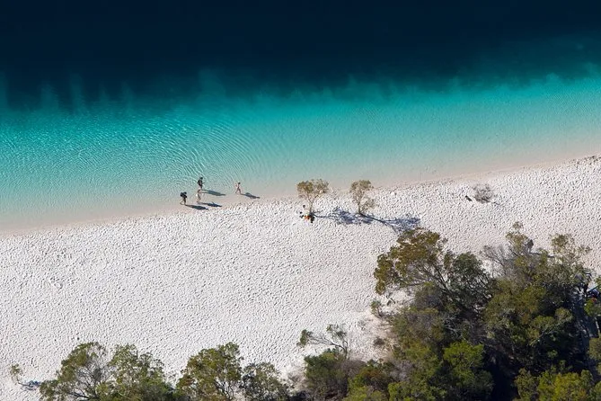 Main stops include Lake McKenzie, Lake Wabby, Central Station Rainforest, Eli Creek, Maheno Shipwreck, Indian Head, Champagne Pools and 75 Mile Beach.