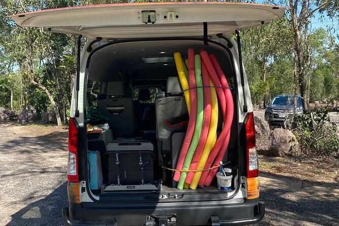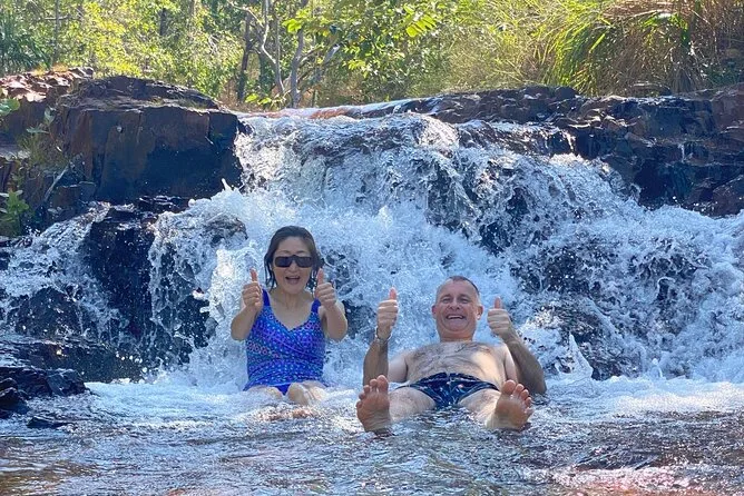 Your day includes pickup from your accommodation in Darwin’s CBD around 8 am, air-conditioned transport throughout the journey, seasonal fruit and snacks along the way (think biscuits and fresh local produce), all swimming stops with pool noodles provided for floating around comfortably, plus a picnic lunch prepared by The Harvest Press—with gluten free or plant-based options if you ask ahead—and you’ll return to Darwin by early evening feeling sun-soaked but happy.