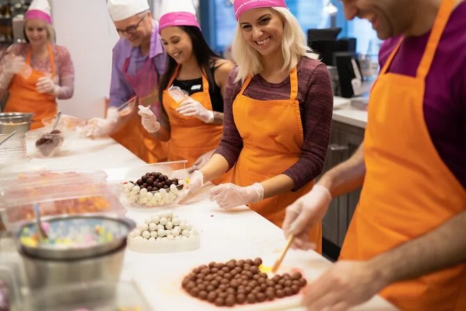 Stepping into the chocolate museum, I caught that unmistakable scent—rich cocoa, a hint of roasted nuts, maybe even a little sugar dust in the air. Our chocolatier, Lukas, greeted us with a grin and handed out aprons. The vibe was relaxed, not rushed. I remember the marble countertop felt cool under my hands as we started rolling hazelnut paste into tiny balls. Lukas showed us how to wrap each one in pistachio, then marzipan—my fingers got a bit sticky, but that’s half the fun. There’s something oddly satisfying about shaping each layer, and you can’t help but sneak a taste now and then.