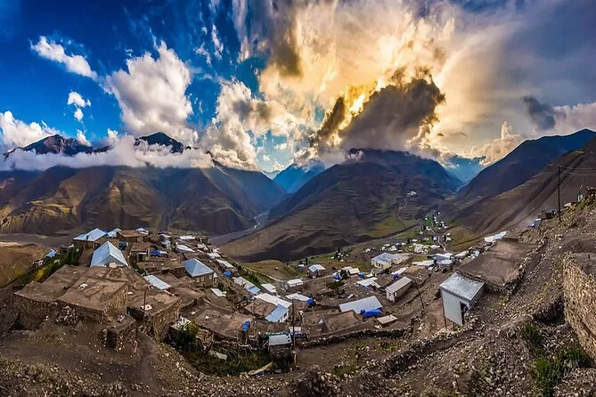 Your day includes pickup in an air-conditioned vehicle from Guba, all fuel surcharges and parking fees covered, transfers up to Khinalug village in classic Soviet 4x4s, bilingual professional guiding throughout (English or Russian), plus stops at Masazir Pink Lake and other key sites before returning late afternoon or evening.