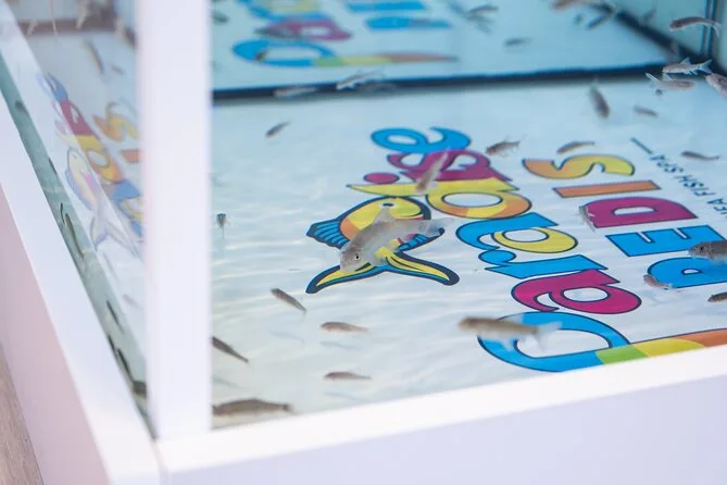 Your session includes a warm towel, exfoliating foot scrub before dipping into the Garra rufa tanks, unlimited tropical drinks throughout your stay, plus a relaxing foot massage at the end—all handled by welcoming local staff who keep things fun from start to finish.