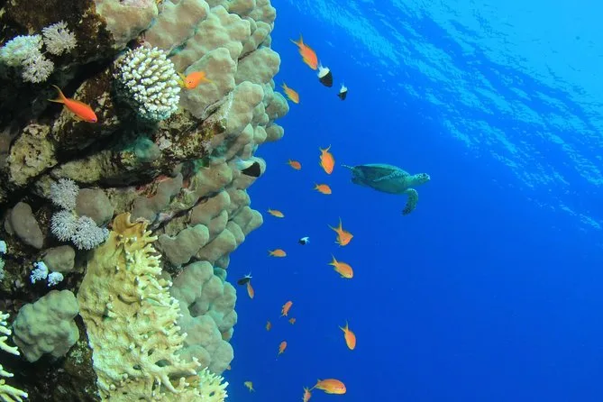 Transferring from the boat to the Atlantis Submarine itself was easier than I expected (there’s this ladder — not as scary as it looks). Once inside, it felt oddly cozy. There’s air conditioning and these big round windows everywhere. Our co-pilot, Marcus, gave us a quick safety rundown and then suddenly he called out: “Dive! Dive! Dive!” It got quiet except for some gentle humming as we went down. The water shifted from bright turquoise to this deep blue-green — almost dreamlike. I remember pressing my forehead against the glass and seeing these wild sea fans waving back and forth, and bright fish darting past like they owned the place.