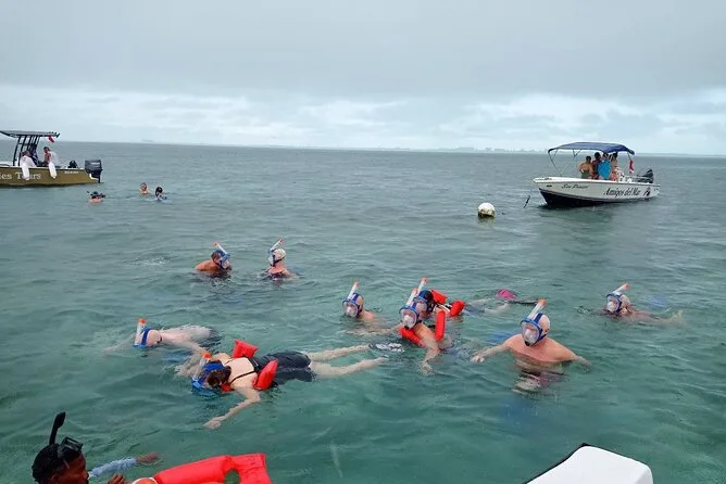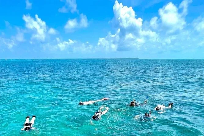 Your day includes all fees and taxes covered upfront, use of quality snorkeling equipment sized for you by the crew, bottled water or pouches to stay hydrated between swims, plus fresh seasonal fruit served as a snack on board before heading back to port in Ambergris Caye.
