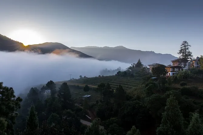Landing in Paro is something I won’t forget—the plane dips between green hills and you catch flashes of snow peaks if you’re lucky with the weather. I grabbed a window seat on the left and got a glimpse of Everest and Kanchenjunga poking above the clouds. The air felt crisp as we drove into Thimphu, passing the old Paro Dzong and that watchtower sitting quietly above town. First stop was Tachhog Lhakhang—crossing its iron chain bridge with prayer flags fluttering in the wind made me feel like I’d really arrived somewhere different. The river below was loud and cold; my hands tingled from the breeze.
