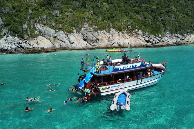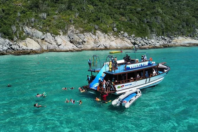 You’ll feel the Atlantic wind as you cruise past Arraial do Cabo’s blue coves on a two-deck boat tour with waterslide fun, fruit snacks, Wi-Fi, and friendly guides who know every story behind these beaches. Swim at Ilha do Farol if the Navy allows it that day — sometimes unpredictability is part of the magic.