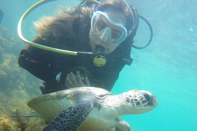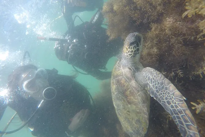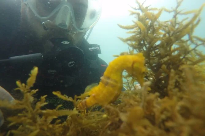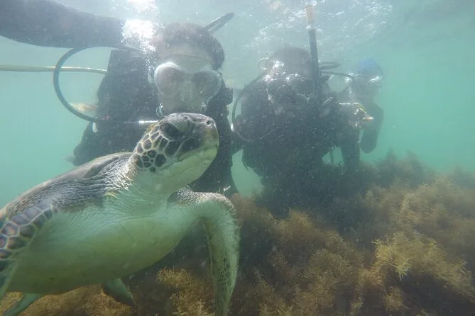 Your day includes all diving equipment (cylinder, wetsuit, mask), individual support from an accredited instructor throughout the activity, a safety briefing before entering the water, five digital underwater photos to keep afterward, plus access to hot showers so you can rinse off before heading out again.
