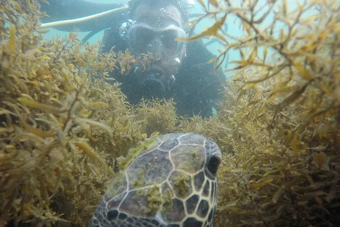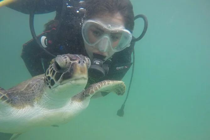You’ll suit up right on Praia da Miséria before heading out with a local guide for your first dive among turtles and bright fish. Experience that odd mix of nerves and excitement as you breathe underwater for real — then warm up with a hot shower back at base while looking through your free underwater photos.