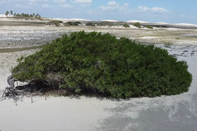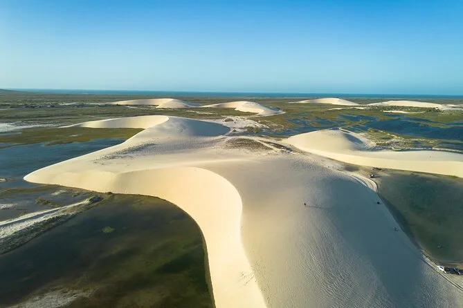 Your day includes transport by 4x4 vehicle with pickup from your accommodation near Jericoacoara, visits to Árvore da Preguiça (the Sloth Tree), Preá Beach’s lagoons, Lagun Beach (Blue Hole), photo stops on Jeri’s dunes at scenic spots chosen by your guide, plus plenty of time relaxing in hammocks over Lagoa do Paraíso before heading back.