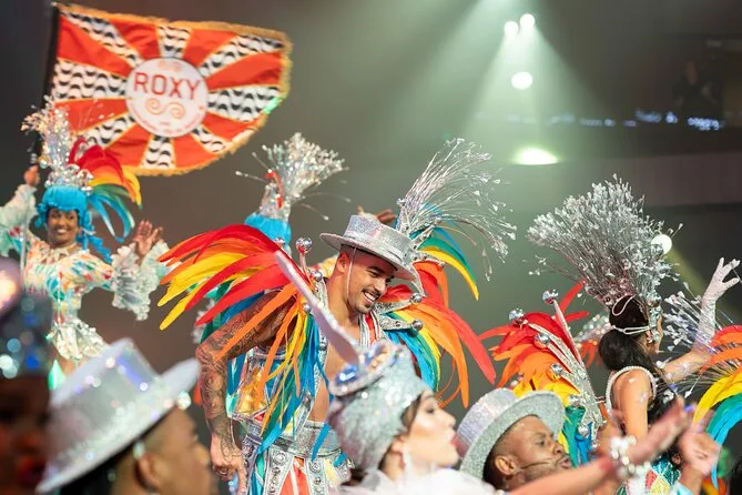 Your evening includes reserved entry to Rio’s Roxy Dinner Show with a three-course menu celebrating Brazilian regions—two starters, four mains (including vegan choices), three desserts—and friendly local staff guiding you through each course while you enjoy live performances right at your table.