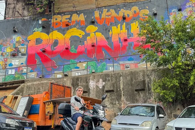 Your day includes meeting your guide at São Conrado station for a guided historic walk through Rocinha’s main street and alleys, an exhilarating motorbike ride past local shops and homes, stops at panoramic viewpoints like Vila Laboriaux and Bella Vista Rooftop, plus visits with residents including your guide’s own family along the way.