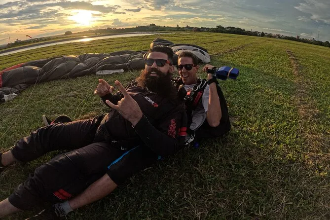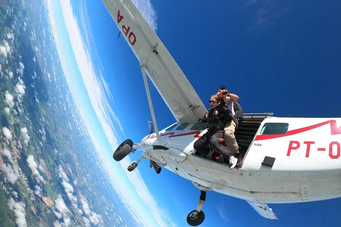 Your day includes boarding passes for an ANAC-certified scenic flight over São Paulo, all necessary jumpsuit and safety equipment rental, plus a pre-jump briefing led by an instructor certified by the Brazilian Skydiving Confederation before your tandem jump—and you land right by the school afterwards.