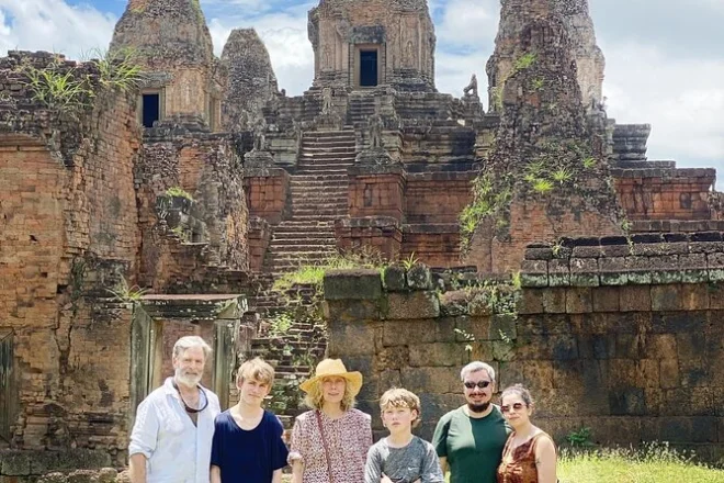 The second day started later (thankfully), with more time to notice little things: monks in orange robes sweeping leaves at Pre Rup, dragonflies hovering over Neak Pean’s pools. The sun was sharp but our van stayed cool enough between stops. Ta Som was quieter than the big temples; I liked that nobody hurried us along. Dara explained how Preah Khan used to be its own city — hard to picture now with trees growing everywhere, but he pointed out old library stones hidden under vines.