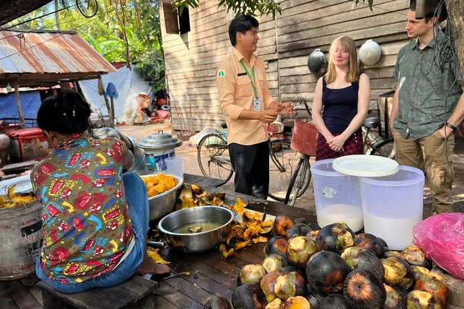 Lunch was at this open-air spot nearby — simple food but full of flavor (the lemongrass hit me first). There was a moment where we watched a local woman making palm sugar by hand; she let us taste some right off her spoon. After that, Angkor Wat itself felt huge, almost intimidating at first glance. Dara explained some of the bas-reliefs but also gave us time to just wander quietly. I found myself tracing grooves in the old stone walls without really thinking about it.