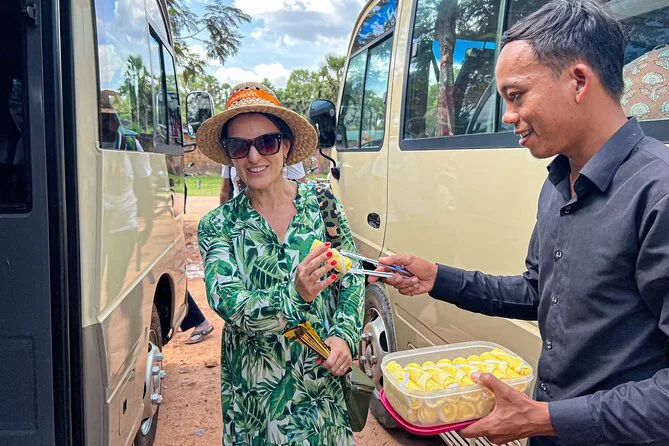 Your day includes hotel pickup and drop-off by air-conditioned vehicle, all temple entry fees covered ahead of time so you don’t have to queue up anywhere, plenty of bottled water and cold towels along the way (trust me you’ll want them), plus lunch at a local restaurant near Angkor with vegetarian options if you need them before heading back after sunset.