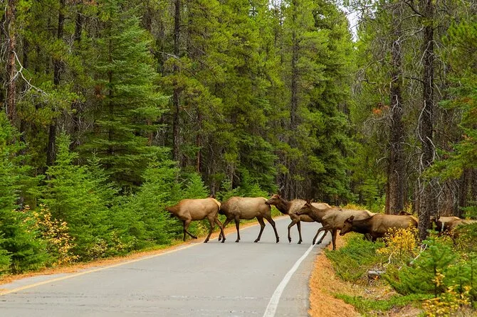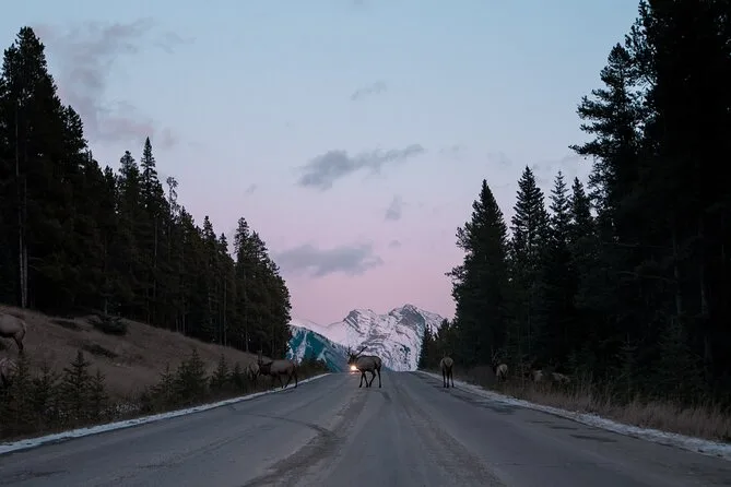 Your day includes pickup and drop-off at Banff Train Station with an expert local guide leading your small group (no more than 12 guests). You’ll travel in spacious transport with big windows for wildlife spotting along backroads near Lake Minnewanka and Bow Falls. Water refills are available throughout (bring your own bottle), plus complimentary hot drinks at a scenic viewpoint during winter tours before returning after sunset.