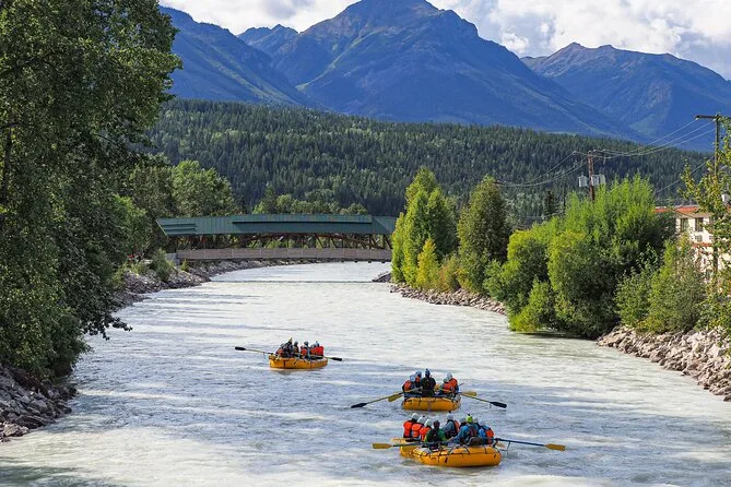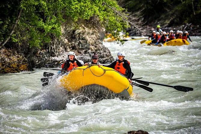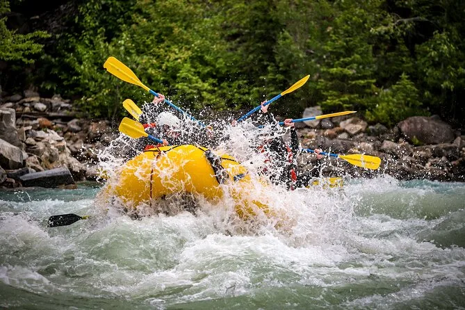 Your day includes roundtrip shuttle transport from Golden to the Kicking Horse River launch point, all required rafting gear (wetsuit, helmet, lifejacket), guidance from experienced local raft guides throughout your trip, plus a riverside BBQ lunch if you select a full-day or family tour—just let them know your meal preference ahead of time before heading back in comfort after your adventure.