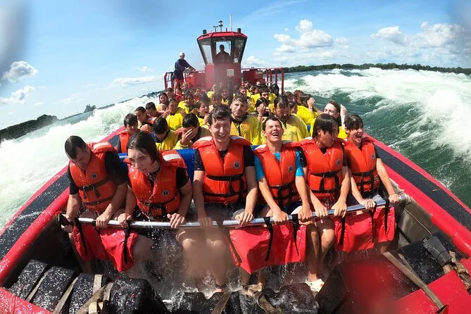 Your day includes a one-hour guided jet boat ride on Montreal’s St. Lawrence River with life jackets provided for safety, plus ponchos to help with splashes (though honestly you’ll still get soaked), secure lockers for your belongings, heated changing rooms after your ride, and sandals if needed—just bring yourself and maybe an extra shirt for later.
