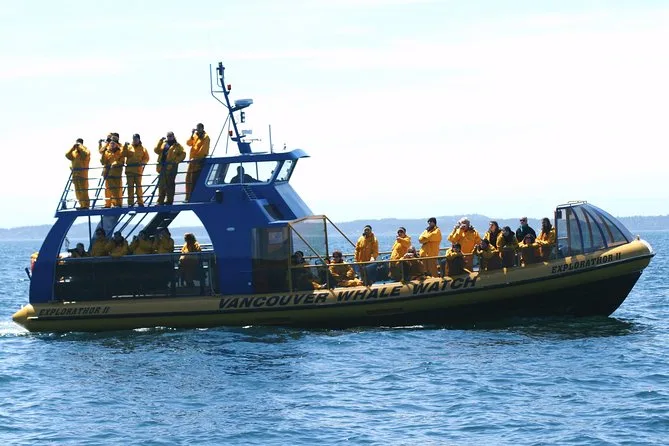 Your day includes round-trip shuttle pickup from downtown Vancouver if reserved ahead (for an extra fee), a naturalist guide leading live commentary throughout your journey from Steveston through the Gulf Islands and Strait of Georgia, bottled water and granola bars as snacks onboard, yellow windbreaker jackets to keep you dry against ocean spray, an Orca Ranger activity book with badge for kids who want one—and if you don’t see any whales? You get another trip free with no expiry date.