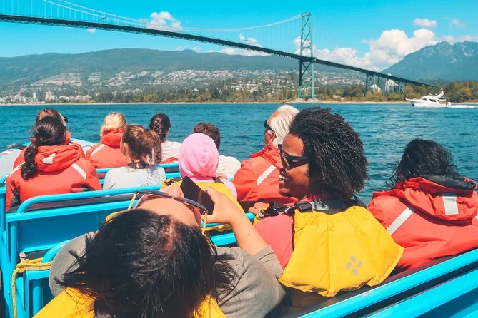 Your day includes all safety gear like lifejackets and survival suits plus a friendly local guide who also drives the Zodiac boat — just meet at Granville Island before departure and everything else is handled from there.