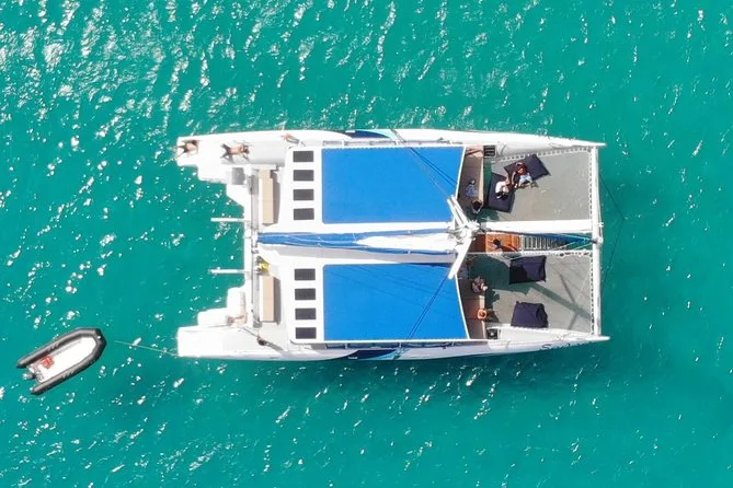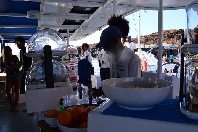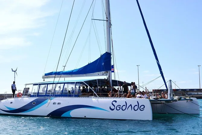 You’ll sail from Palmeira on Sal Island aboard a spacious catamaran with open lounge decks and plenty of room to relax. Enjoy unlimited drinks, fresh snacks, swimming stops—including a floating pool—and maybe even spot turtles or whales depending on the season. It’s an easygoing day where comfort comes first and time slows down just enough for you to notice.