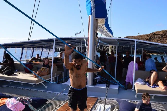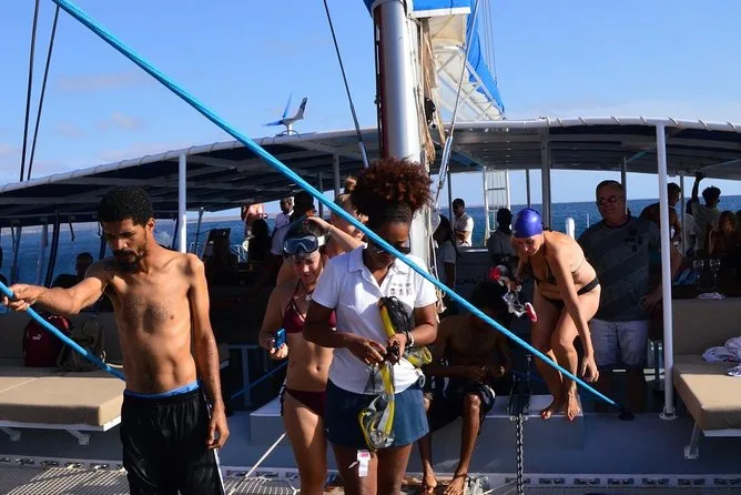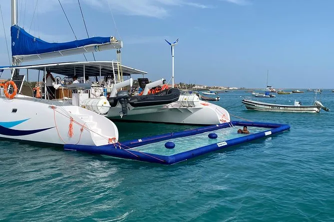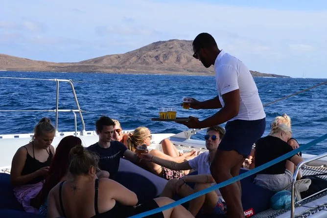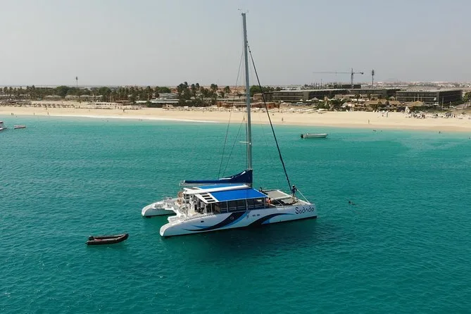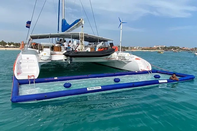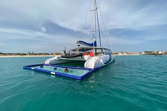 Your outing includes hotel pickup and drop-off from your accommodation on Sal Island, all-day access to a spacious catamaran with lounge beds and open seating areas, unlimited beer, wine and soft drinks throughout the cruise, freshly prepared snacks served onboard, use of snorkeling equipment if you want to explore in the water, towels for drying off after swimming stops (including time in the inflatable floating pool if weather allows), plus live entertainment from the friendly crew before heading back in comfort.