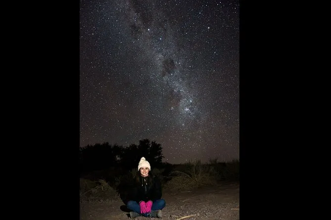 Your evening includes pickup in an air-conditioned vehicle from San Pedro de Atacama, guided naked-eye stargazing followed by telescope viewing of deep-sky objects, astrophoto sessions with stars as your backdrop, plus Chilean wine or pisco sour alongside snacks made from local ingredients and hot drinks like tea or chocolate before heading back under those wild desert skies.