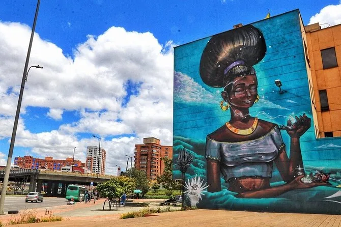 You’ll see the Historical Center including Plaza de Bolívar, Santamaria Bullring, National Museum, Brazil Park, graffiti on Dorado Avenue, and Paloquemao Fruit Market.