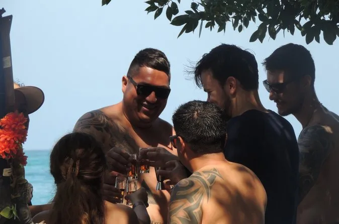 Cartagena boat day to Rosario Islands with snorkel stops, private island, local food and shared music vibes
