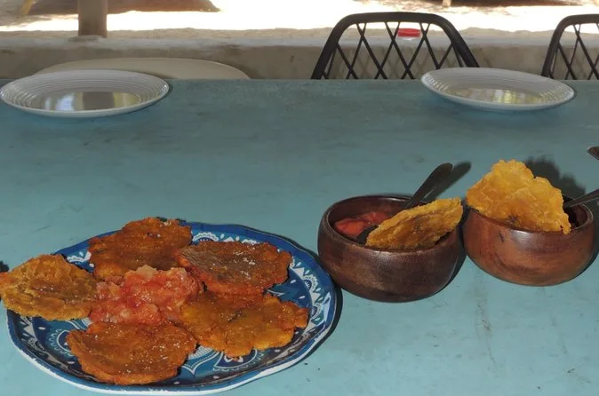 Lunch was fried snapper for most of us — crispy edges, coconut rice that tasted faintly sweet. There was grilled chicken too if you wanted it, or veggie rice for a couple in our group who didn’t eat fish. I sat with Li and two others facing Playa Cristal; the water looked almost fake from there. A few people got massages on the sand (I skipped it), but honestly just sitting there watching local kids play soccer nearby was enough for me. It felt easy in a way travel rarely does — no rush back to Cartagena yet.