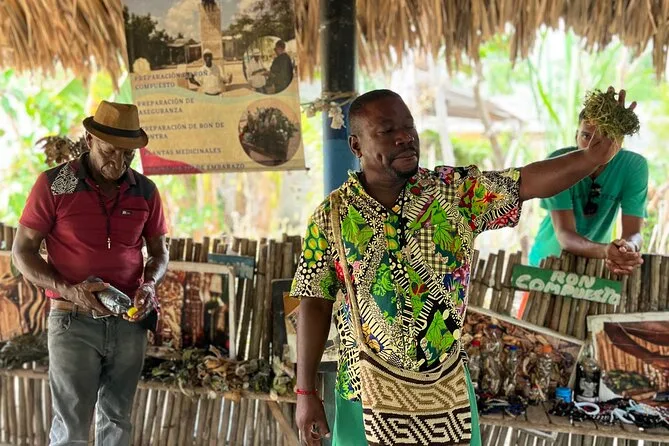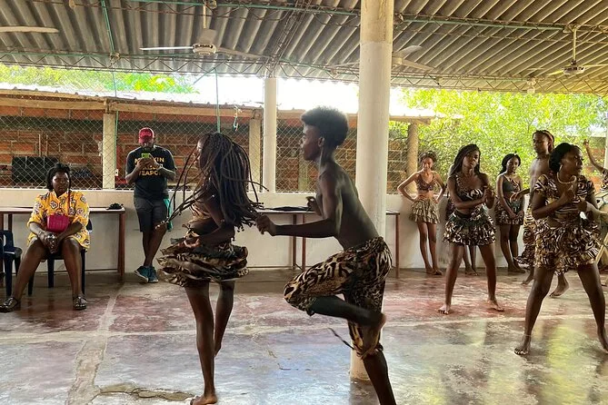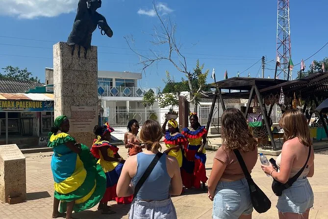 You visit ancestral sites like Casa de Tambores, Casa del Arte, Panque replica village, Kid Pambelé statue, plus enjoy music and dance shows.