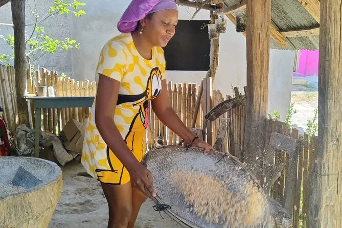 Your day includes air-conditioned round-trip transportation from your hotel in Cartagena to San Basilio de Palenque, all entrance fees to sites like Casa de Tambores and Panque replica village, bottled water along the way, lunch at a central palenquero restaurant (expect local fish dishes), plus live music and dance performances before heading back to Cartagena in the afternoon.
