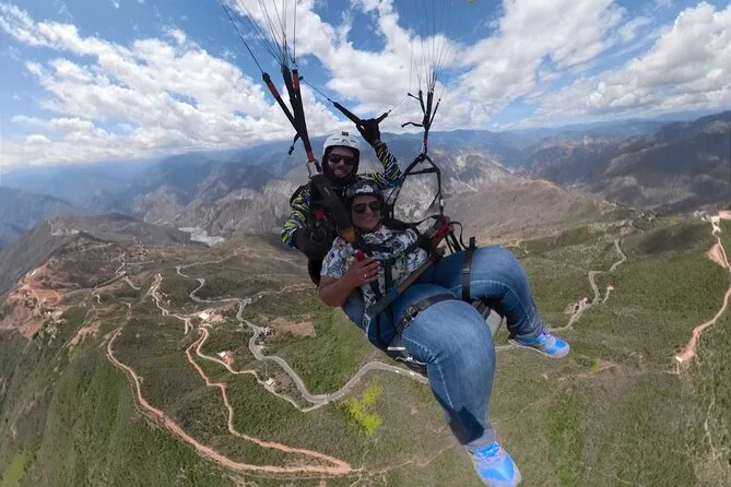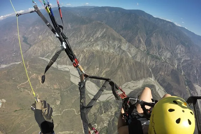 You’ll stand at Chicamocha Canyon’s edge, harness up with an experienced local pilot, and run straight into open sky — floating high above the river and mountain ridges. Expect wild views, quick laughs with your guide, bottled water after landing, and a feeling that sticks around long after your sneakers hit ground again.