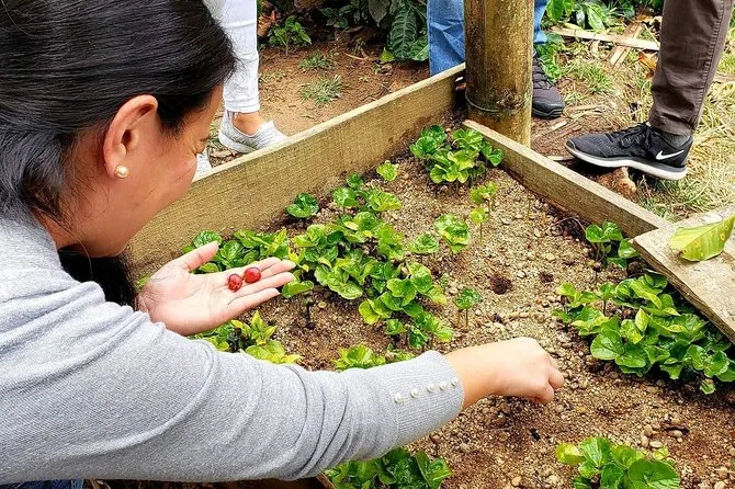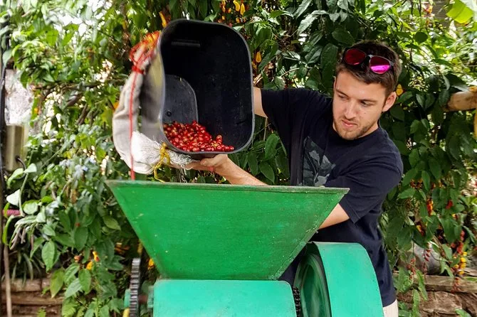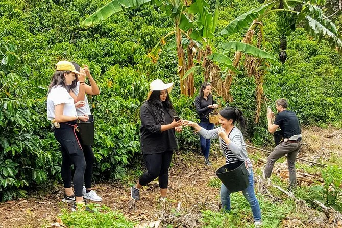 Your day includes hotel pickup and drop-off (or airport drop-off if needed), fruit tasting at a local market before heading out to Guatapé’s countryside, full access to a working coffee farm where you join every step from picking to brewing your own cup, entry fees covered throughout; plus a traditional Colombian lunch in town before wandering colorful streets—and all transport is by comfy air-conditioned vehicle.