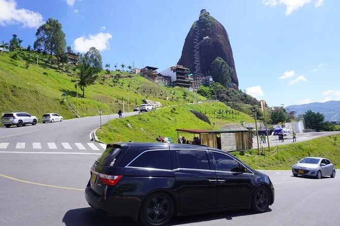 Your day includes hotel pickup in Medellín, private car transfers throughout, entry to La Piedra del Peñol for climbing, a private boat ride on Guatapé Lake (in option 2), a guided walk through Guatapé’s colorful streets, a typical Antioquian lunch in town, an approximately 6-minute shared helicopter flight over the dam (with refund if canceled), accidents insurance coverage, and your own local guide until drop-off back at your hotel.