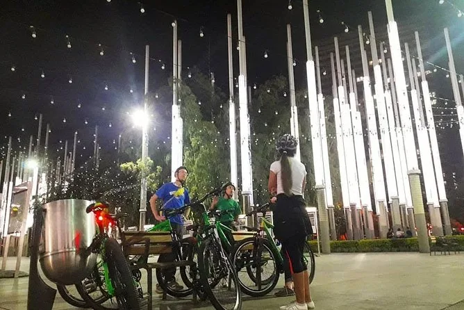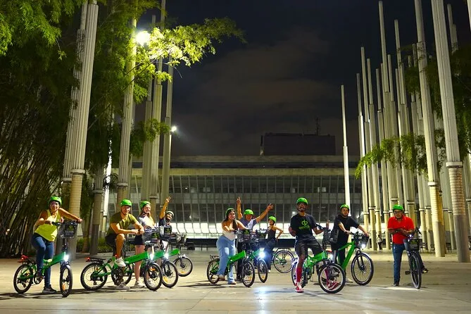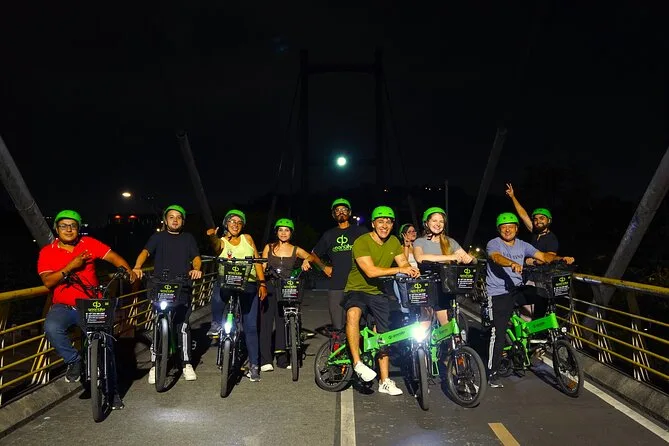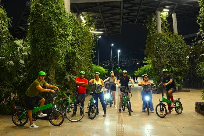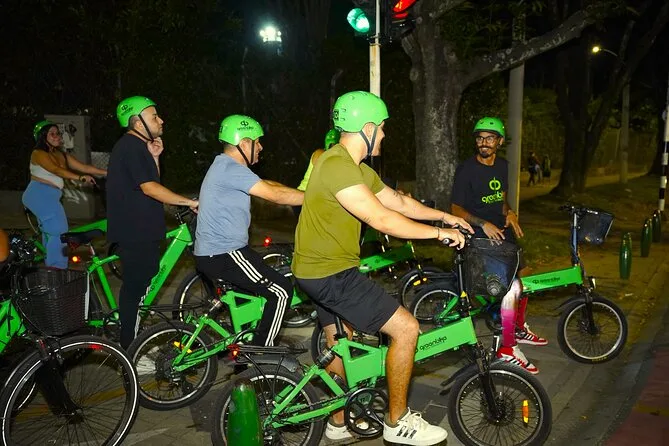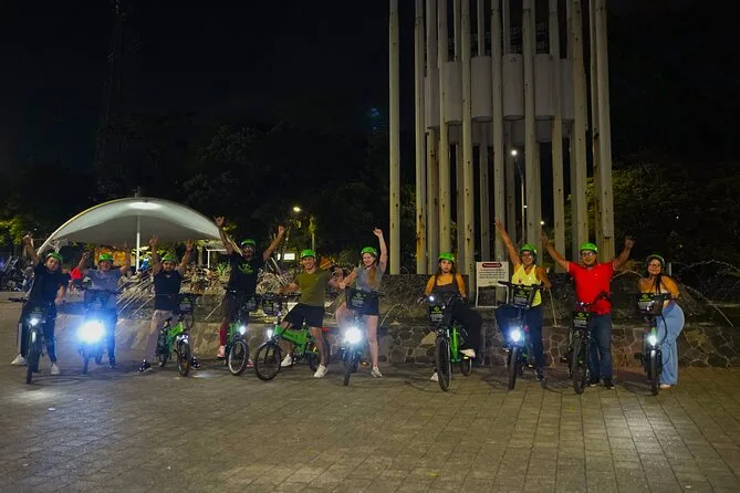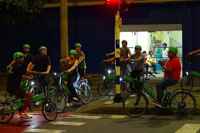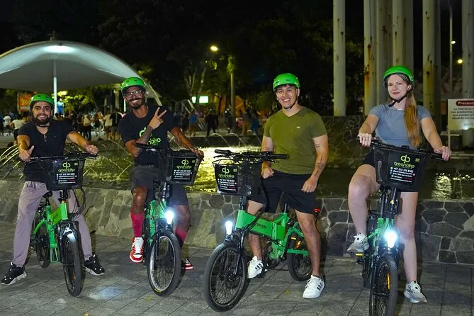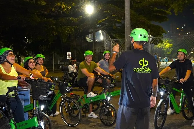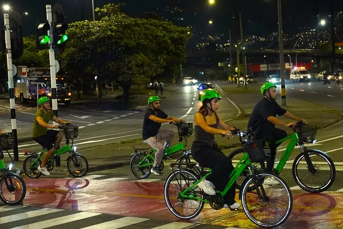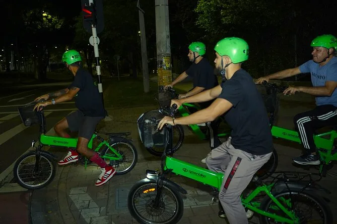 Your evening includes use of a bicycle and helmet, guidance from a local expert who knows Medellín inside out, plenty of stops for fresh Colombian snacks like buñuelos plus coffee or tea along the way—so you can really taste what locals eat as you ride through their neighborhoods under city lights.