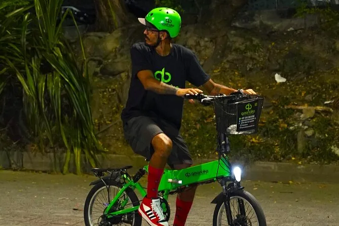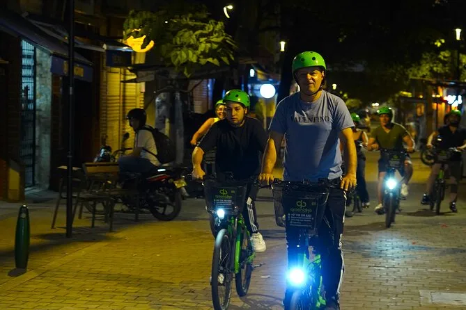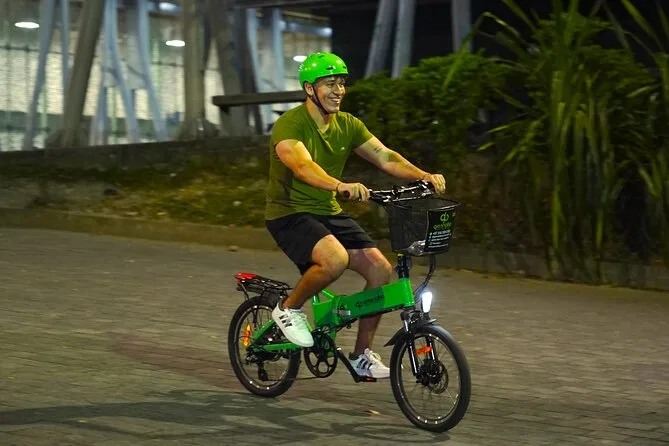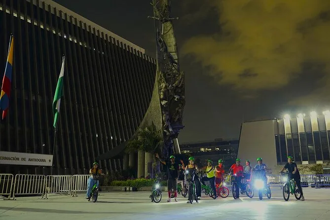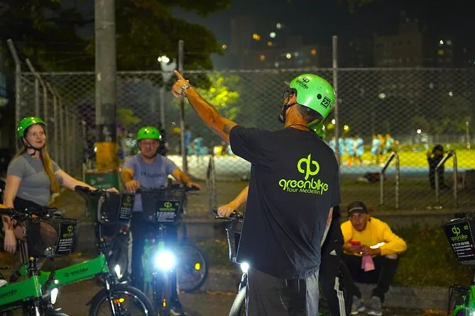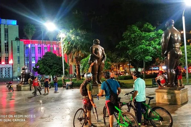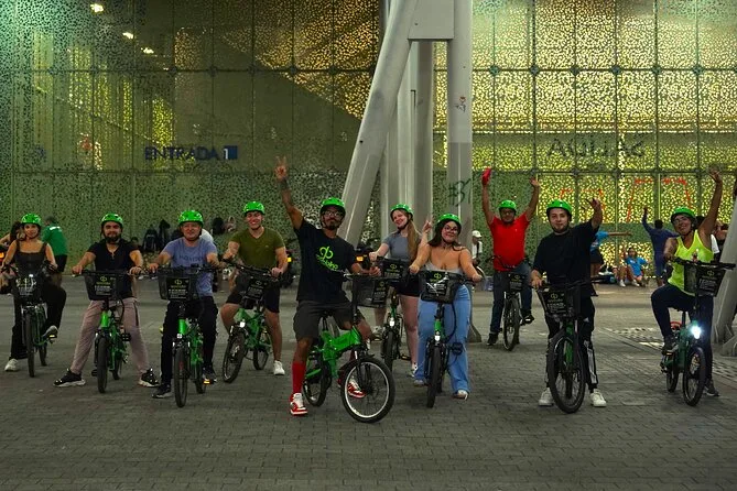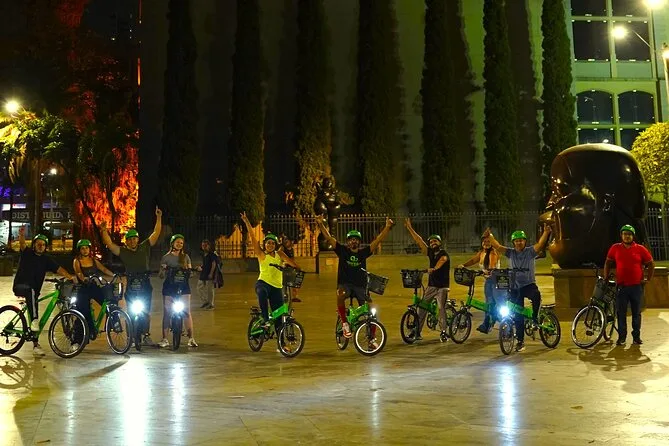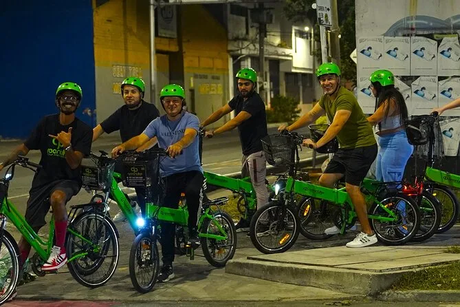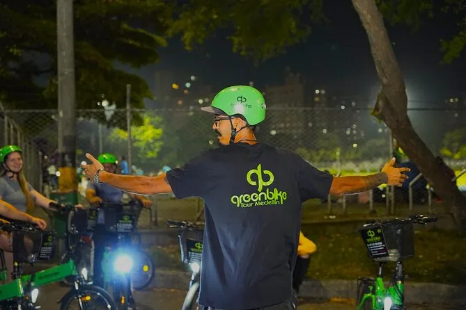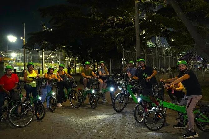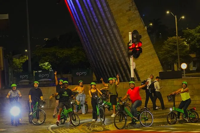 Your evening includes use of a bicycle and helmet, guidance from a local expert who knows Medellín inside out, plenty of stops for fresh Colombian snacks like buñuelos plus coffee or tea along the way—so you can really taste what locals eat as you ride through their neighborhoods under city lights.