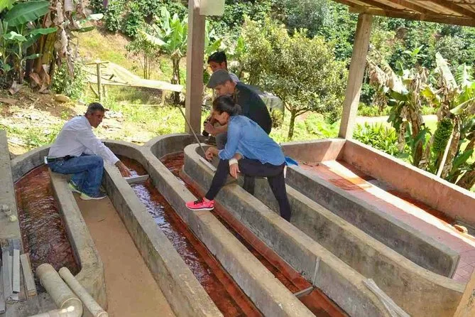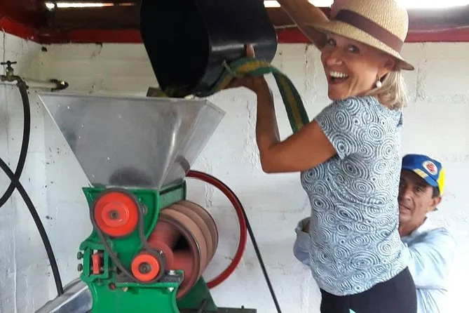 We saw every step after that: depulping (slippery beans everywhere), fermenting in these big tubs, drying under a plastic tent that smelled faintly sweet and sour at once. Luis let us try turning the old threshing machine—loud and satisfying—and then came roasting time. Three levels: light, medium, dark; all done in small batches right there while we watched the color change. Grinding was noisy but kind of fun—I may have gotten coffee dust on my shirt (no regrets). We packed some up to take home but honestly it tasted best there, sipped slowly with a homemade snack while everyone chatted around a wobbly table.