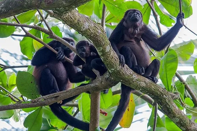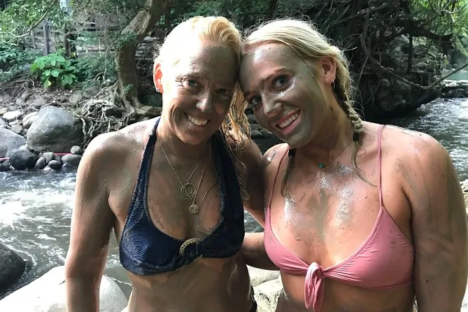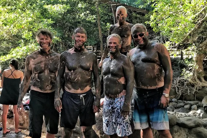 Lunch was at a small spot nearby—rice, beans, chicken stew, and fresh pineapple juice. You could smell wood smoke from the kitchen before you even sat down. After eating, we drove up to Rip Negro Hot Springs. The mud bath was warm and a little messy (in a good way). Sitting there with steam rising around us while howler monkeys called in the distance—honestly, it felt like time slowed down for a bit.