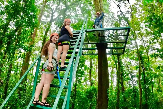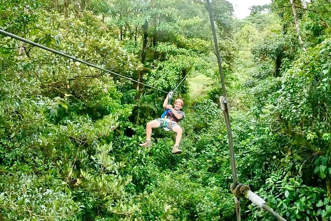 Get ready to fly above lush jungle treetops on nine different zip-lines, guided by friendly locals who know every twist and turn. Feel the rush of cool air as you glide between platforms, spot hidden wildlife along the way, and enjoy an adventure that’s safe for kids and adults alike. This is your chance to experience the jungle from a whole new angle.